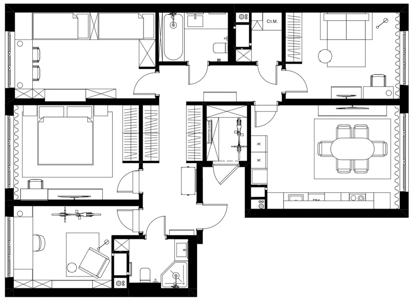 Several options for elaborated planning solutions with logically delimited zones, functional storage systems and ergonomic furniture.